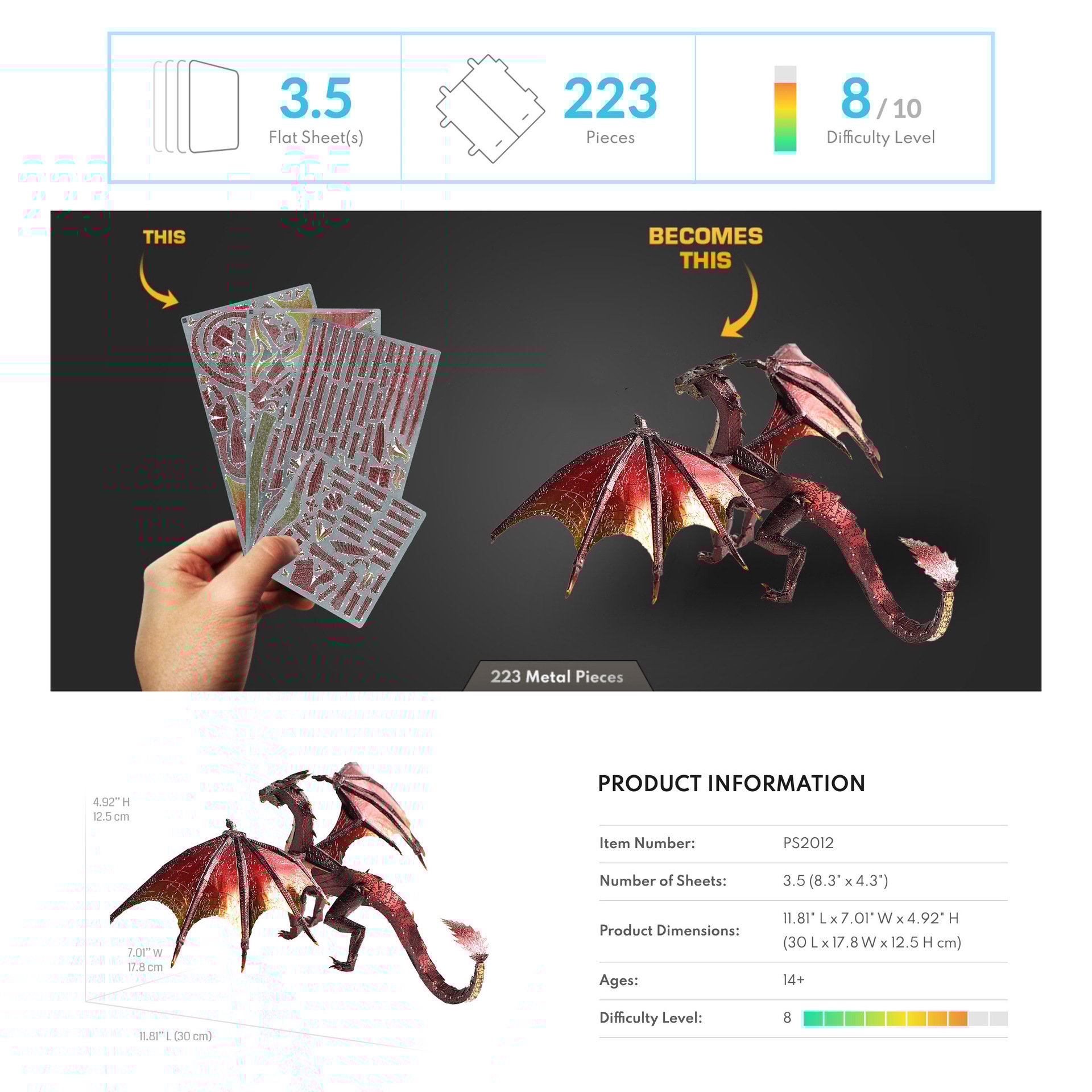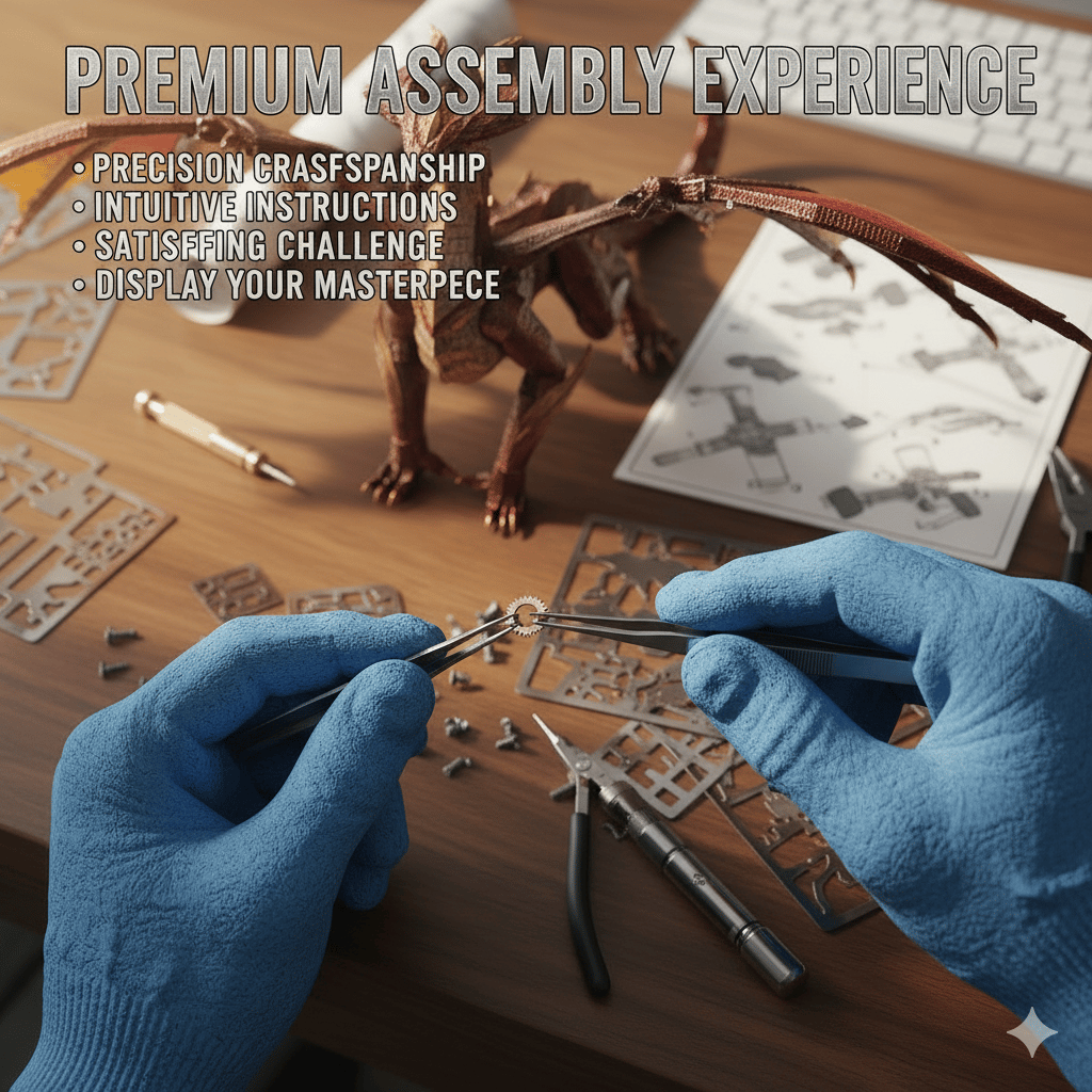 This puzzle is made of premium stainless steel with precision etching technology—every piece is cut with razor-sharp accuracy, even the tiny dragon scales are super detailed! The fold-and-assemble tabs lock together tightly, so your finished dragon stays sturdy and looks absolutely stunning. No cheap plastic here, just solid metal craftsmanship ✨